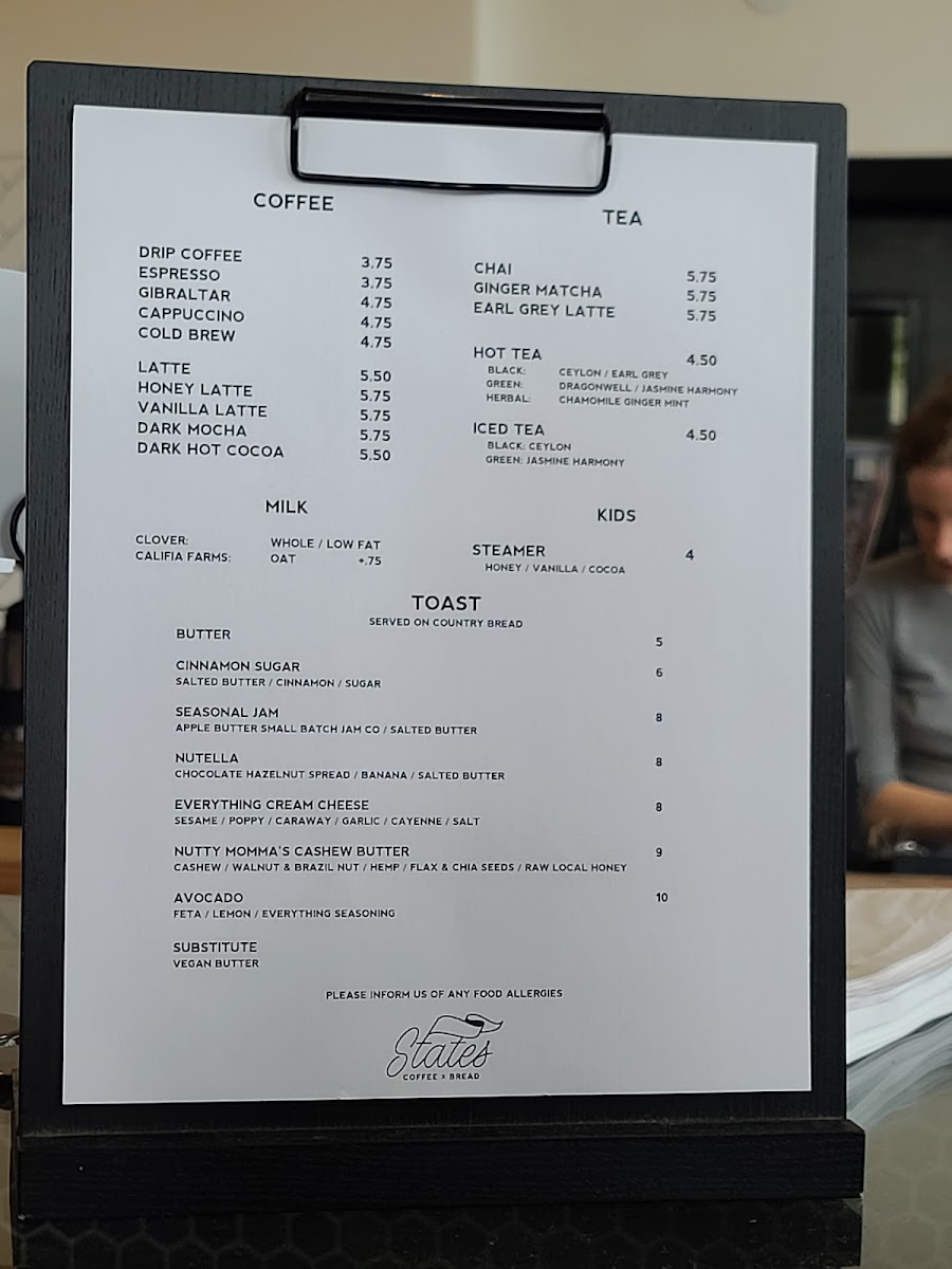 States Coffee Menu